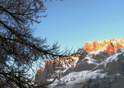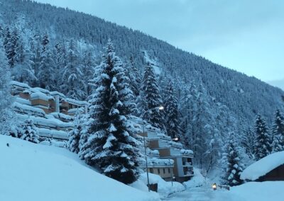 En hiver, départ de l’immeuble ski au pied pour aller au Torent et retour à l’immeuble ski au pied.