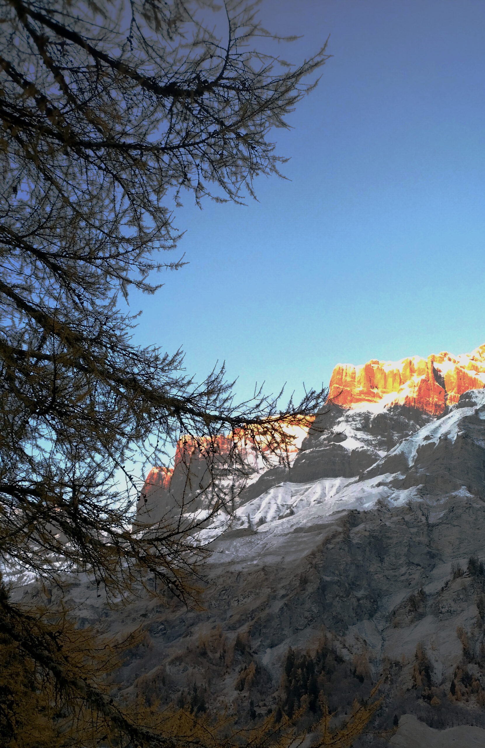 Im Winter Abfahrt vom Ski am Fuss for das Gebäude nach Torent Seilbahn und Rückkehr von der Torret Skipisten bis zum Lärchenwald.